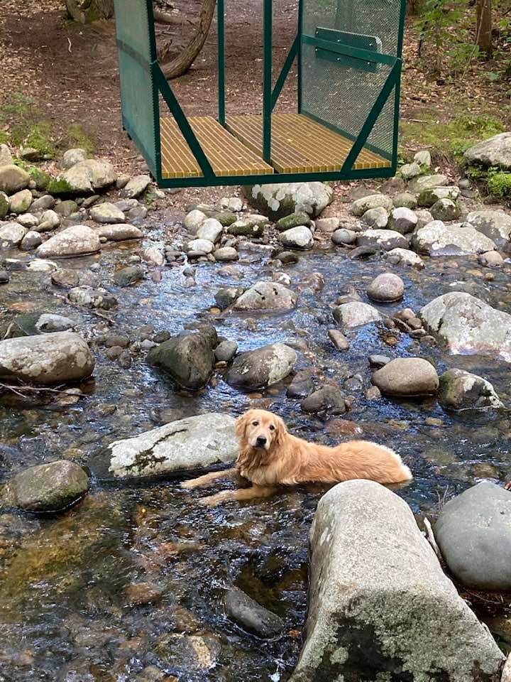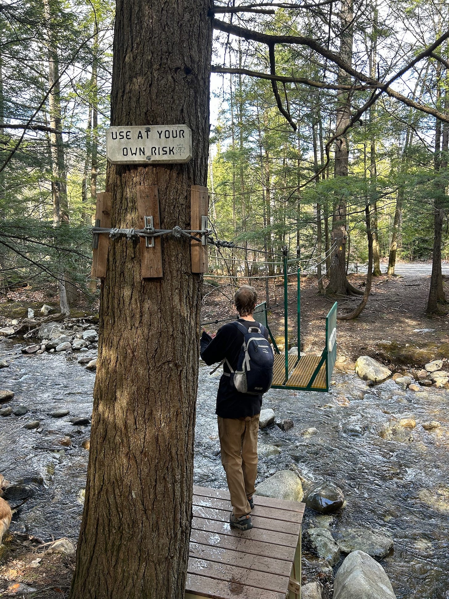 A few years ago, I was here with my parents and we found out that Dogs Don’t Like Cable Cars, when Eli bailed halfway through the ride across, leaping several feet down onto the rocks below, and wading across the rest of the brook, apparently unharmed.